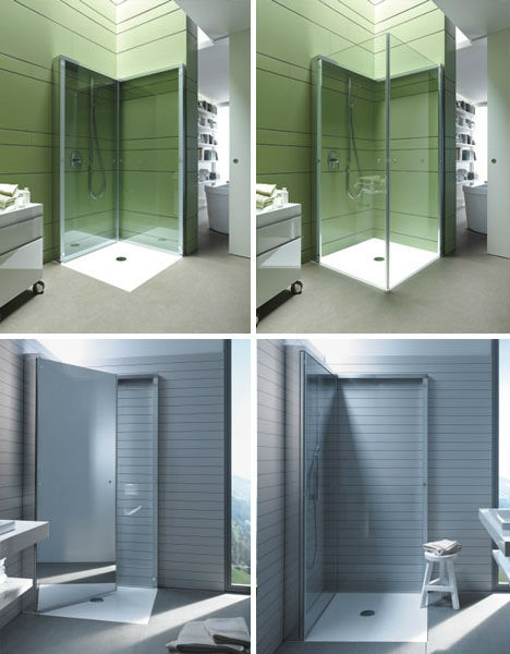 Nếu bạn có một căn phòng tắm chật chội thì bạn nên sử dụng các nhà tắm đứng với kính hai mặt di động. Khi không sử dụng nữa có thể dồn chúng vào tường và không gian phòng tắm lại rộng ra ngay thôi.