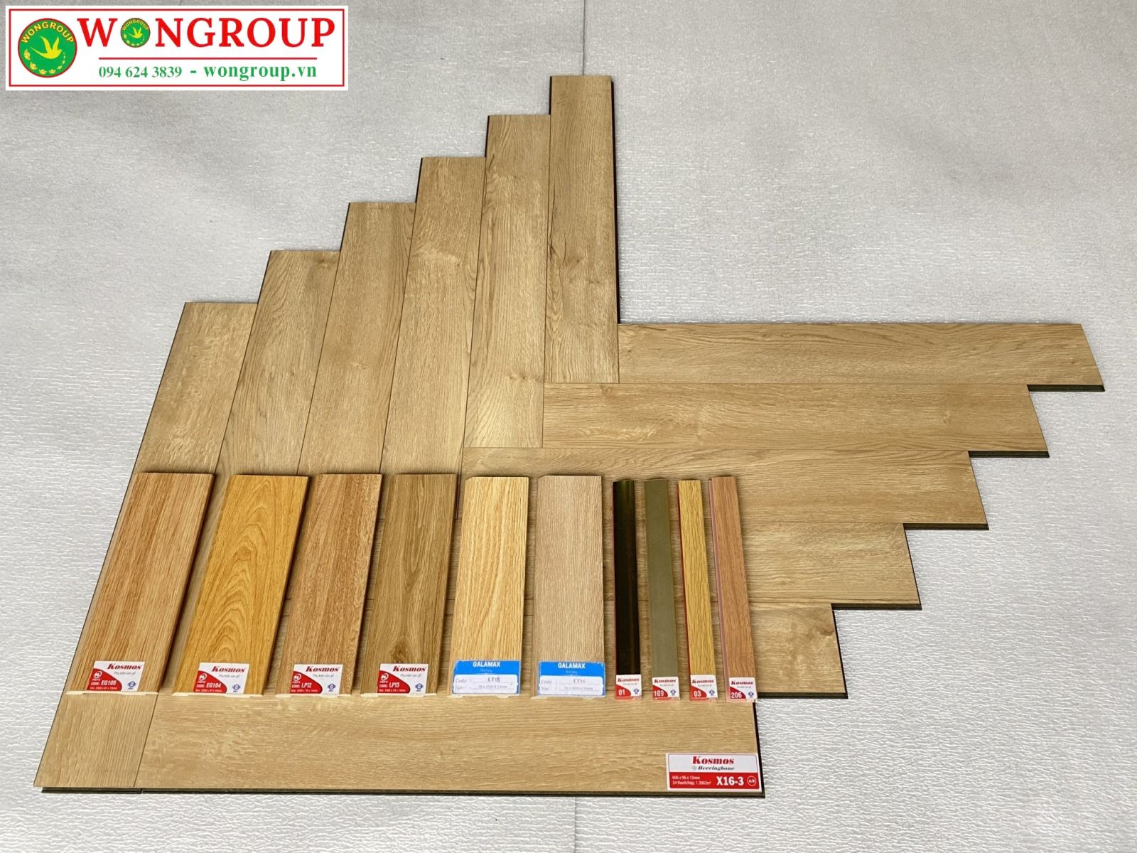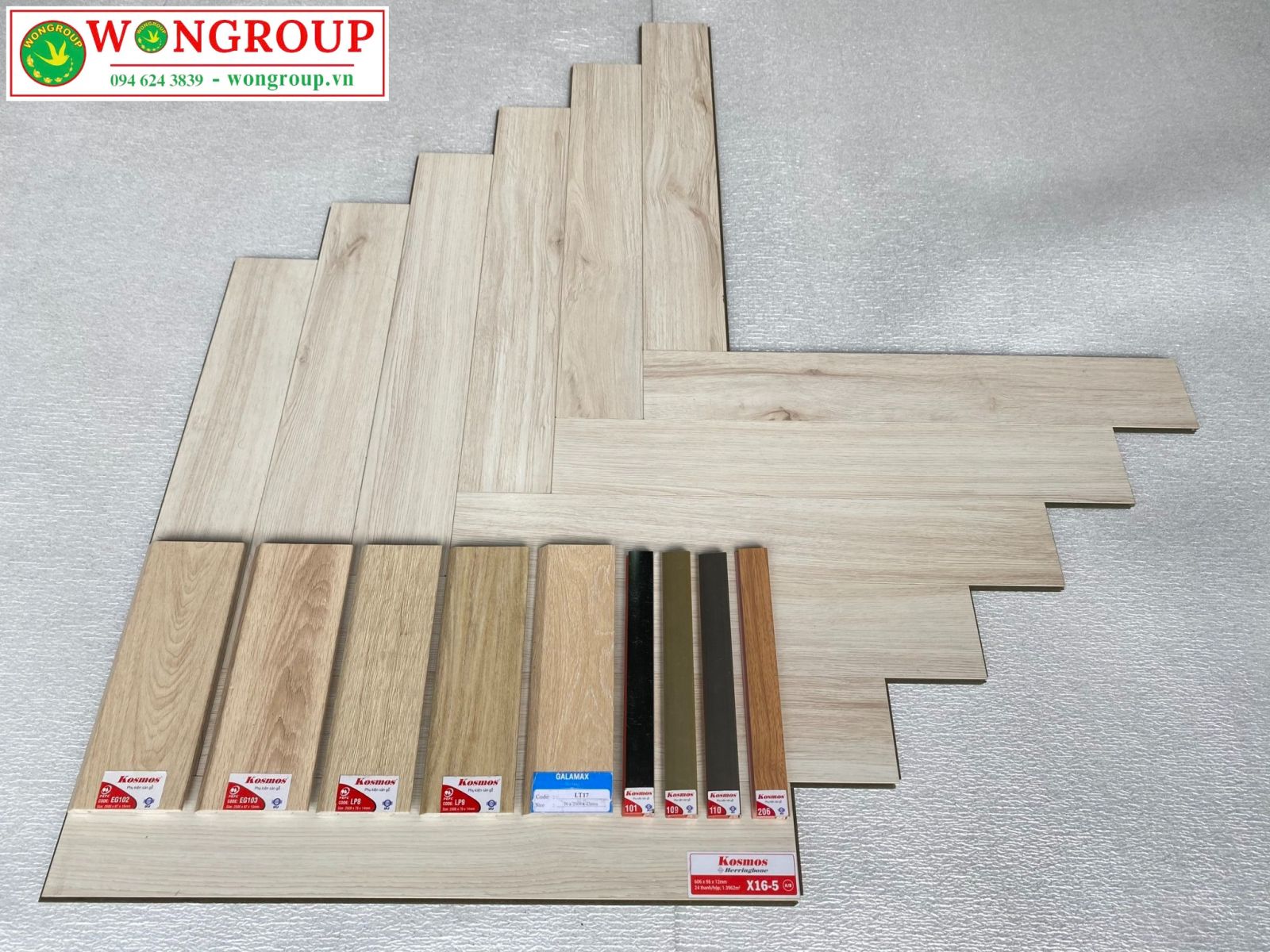 • Sàn Kosmos cốt vàng không đế cao su: Tỷ trọng ván gỗ HDF ≥800kg/m³, có độ trương nở khi ngâm trong nước 24 giờ là ≤20% (loại dày 8mm) và ≤16% (loại dày 12mm)