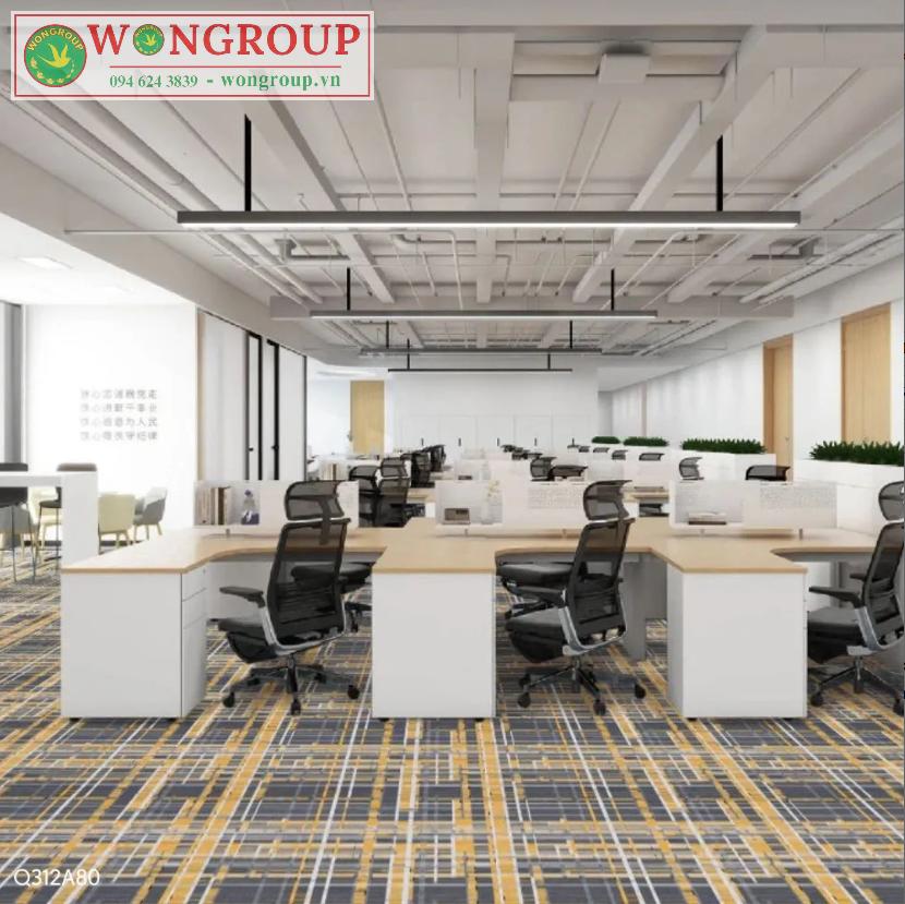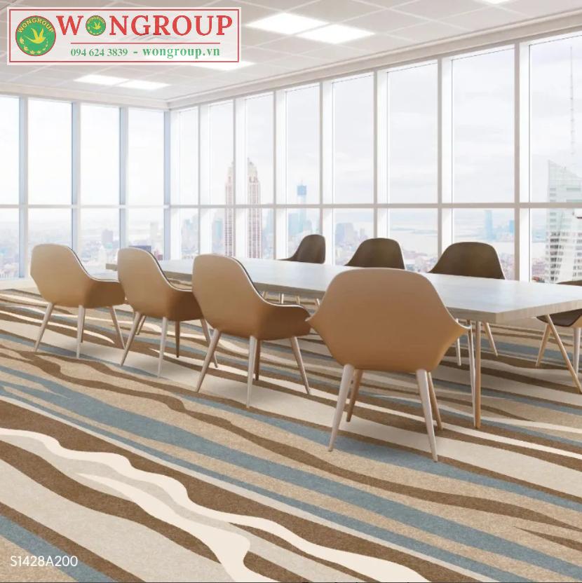 Thảm Axminster văn phòng nổi bật với họa tiết sắc nét, màu sắc bền đẹp theo thời gian, dễ dàng cá nhân hóa theo yêu cầu thiết kế. Là lựa chọn lý tưởng cho những không gian cần sự chuyên nghiệp, đẳng cấp và tính thẩm mỹ cao.