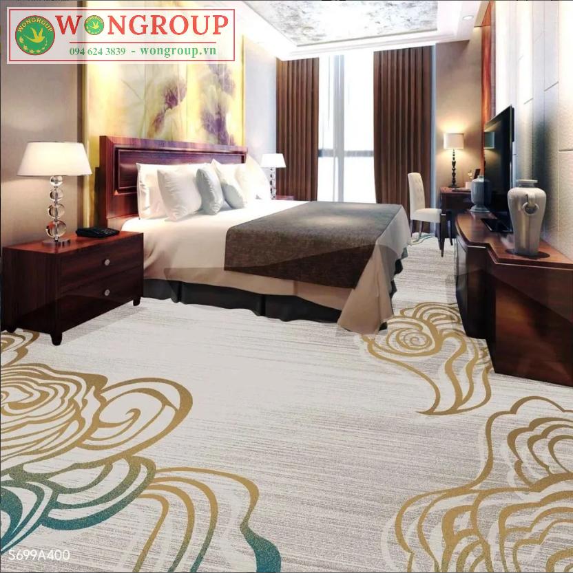 Thảm Axminster khách sạn nổi bật với họa tiết sắc nét, màu sắc bền đẹp theo thời gian, dễ dàng cá nhân hóa theo yêu cầu thiết kế. Là lựa chọn lý tưởng cho những không gian cần sự chuyên nghiệp, đẳng cấp và tính thẩm mỹ cao.